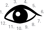 Slowly move the product from inner eye coner along the lower eye line to temple, conduct the circular motions for six times repeatedly on each eye to boost