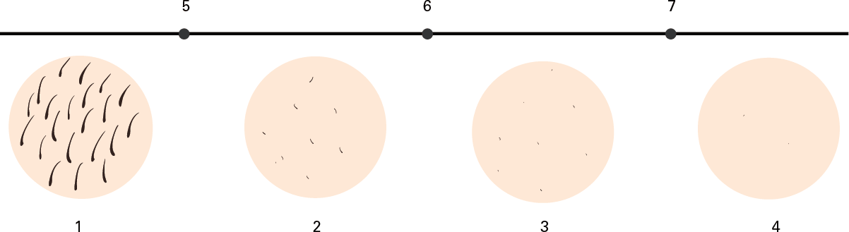 2nd & 3rd Treatment - (Week 2 & Week 4) After 2-3 treatments, you should see a noticeable reduction in hair growth. However, to effectively treat all hair, it is important to keep on treating according to the recommended treatment schedule.