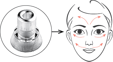 Using EMS IMPORTANT NOTE: Do not use the device near metal implants, braces, silicone or botox. Before treatment, remove any jewelry, glasses, contact lenses and hair pins. 1. Clean your face NOTE: The function starts working once the treatment head (1) is touching your skin. Move the device smoothly around your face. When using the EMS function, we highly recommend to start at the lowest setting first and build up from there. Turn off the device by pressing any button for two seconds.